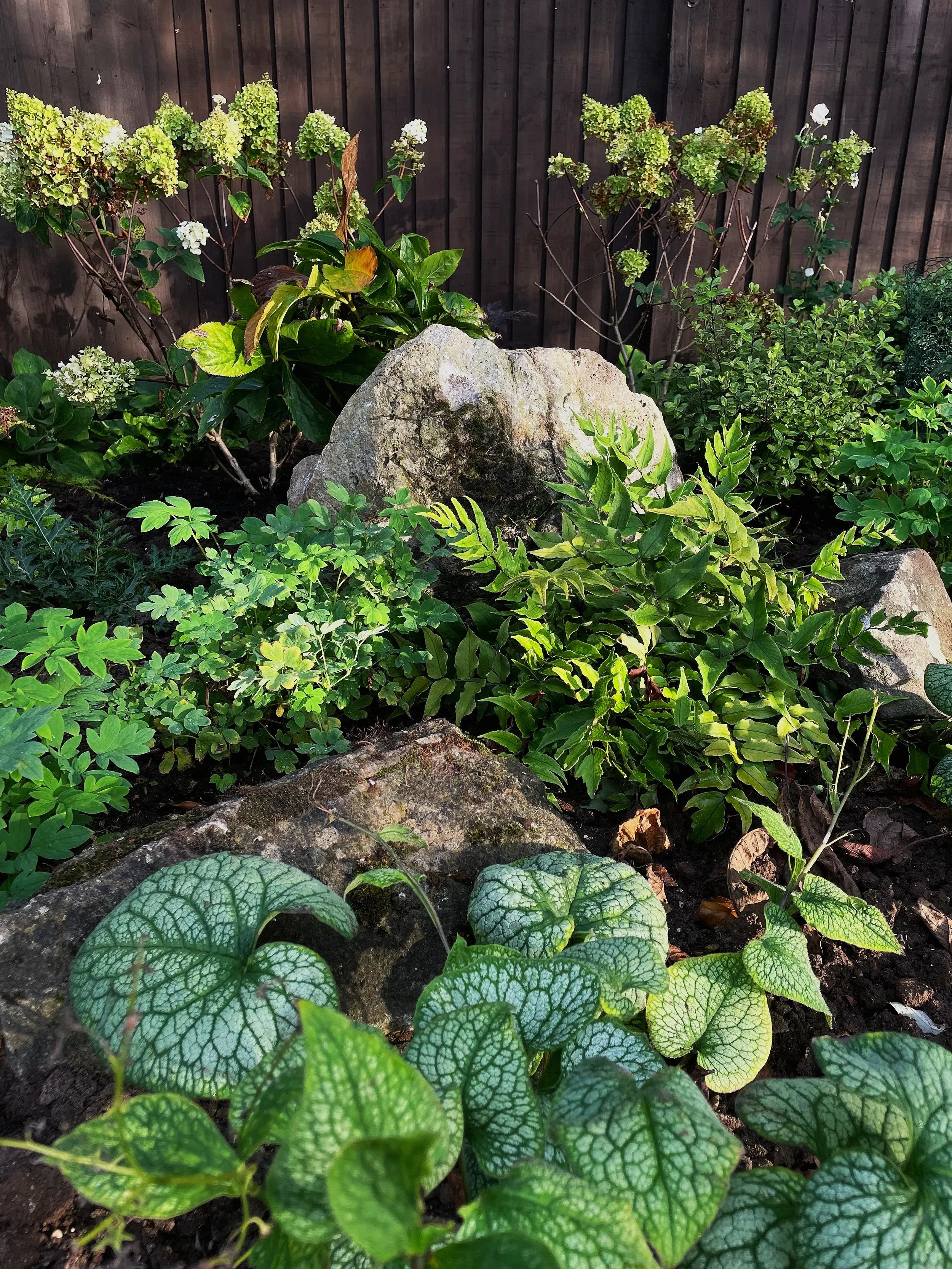Reusing salvageable stone to considerately restore retaining walls surrounding a beck built by the client with her late husband whilst adding some additional planting to the garden to create and frame different areas.
