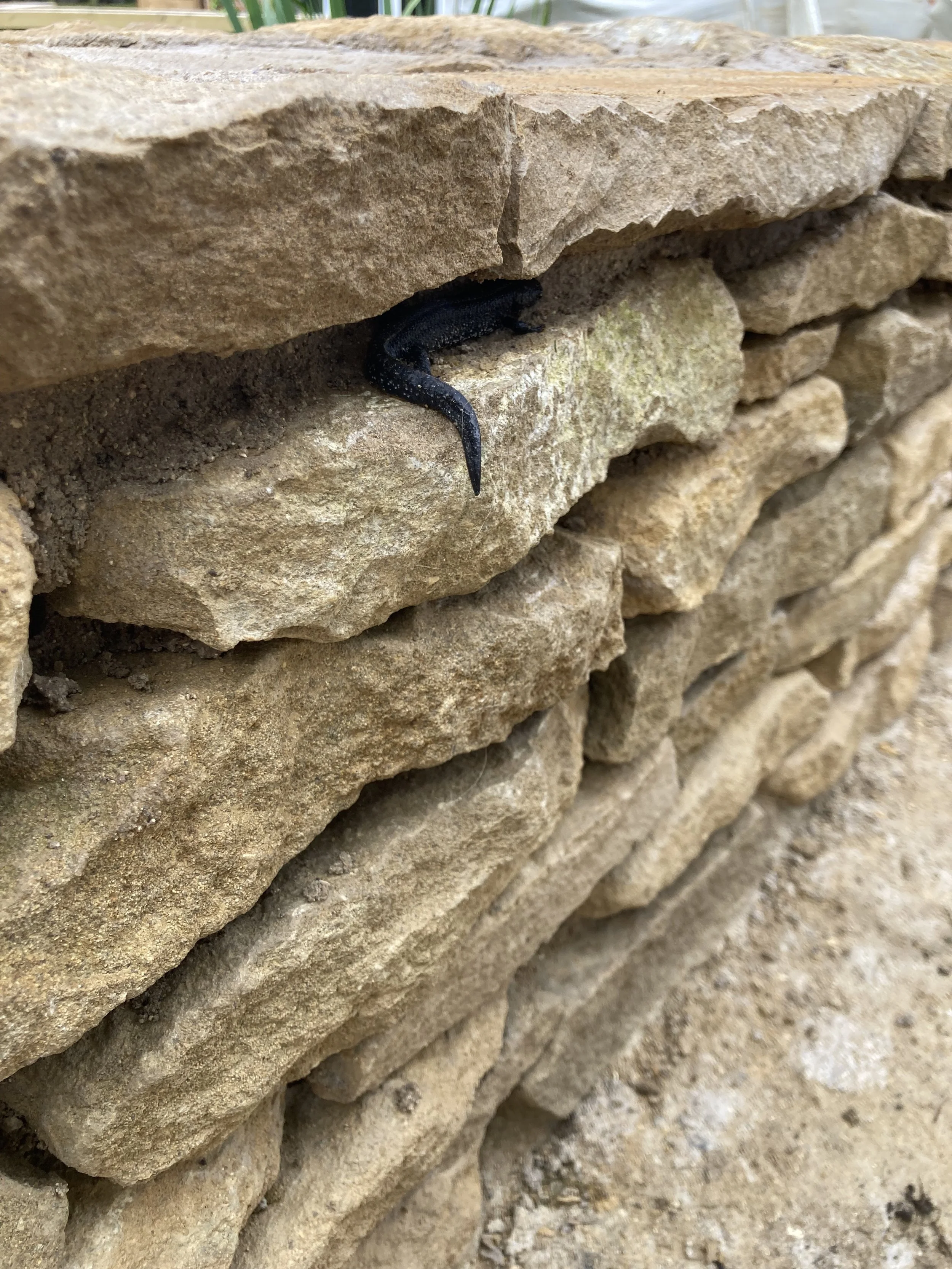 Now providing an excellent habitat for the many great crested newts living by the water. Other additions include a naturally cropped granite cobble edging to existing the footpaths, new crazed paving pathways in colour matched sandstone, a limestone scree bed with clipsham boulders and a crevice rockery made from leftover walling stone. FSC certified dowelled timber was used to construct raised planters for ease of maintenance and pergolas for height and structure.