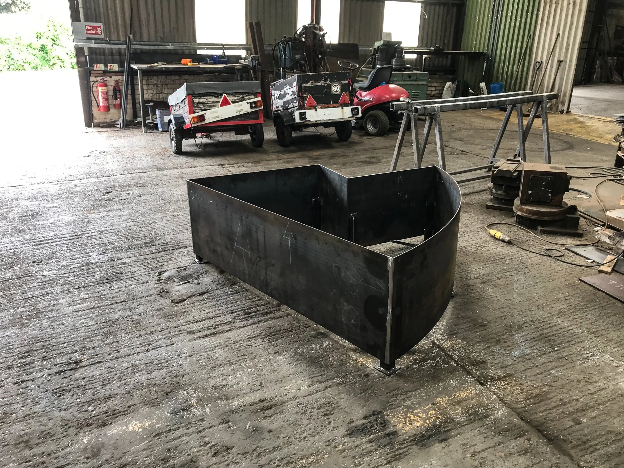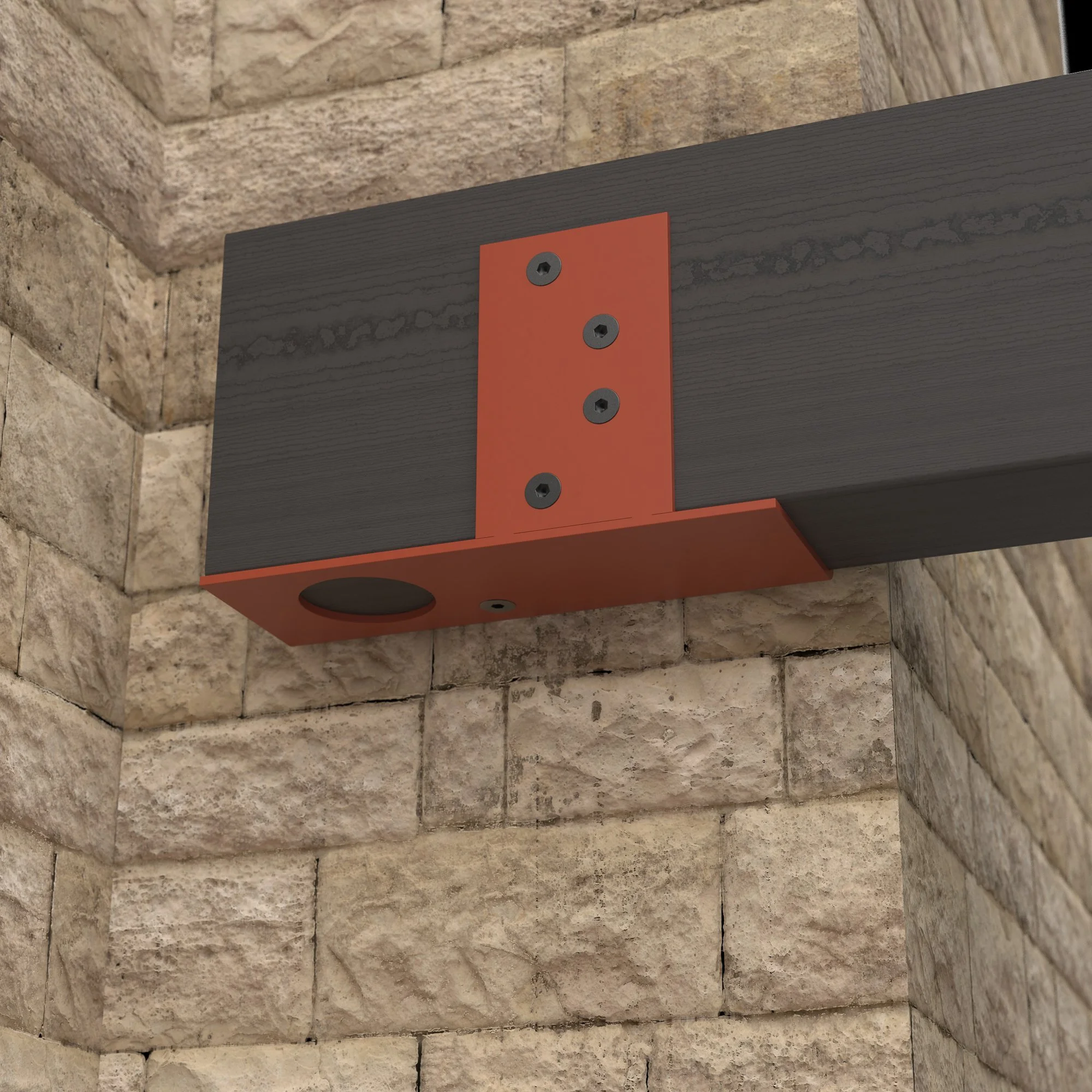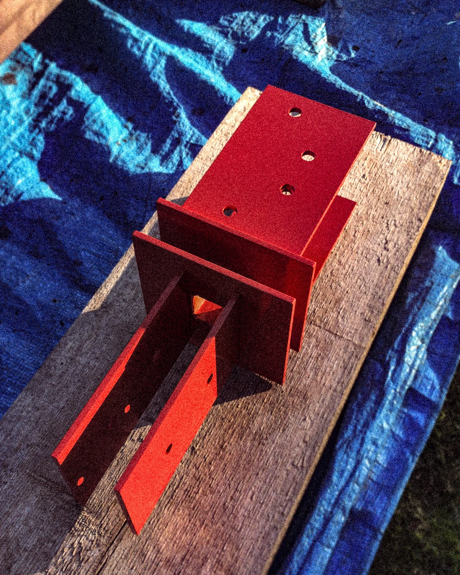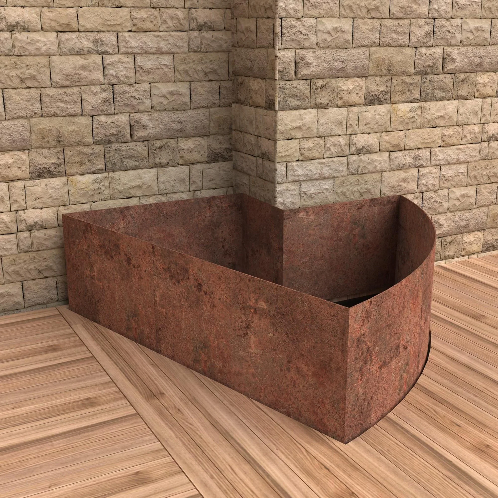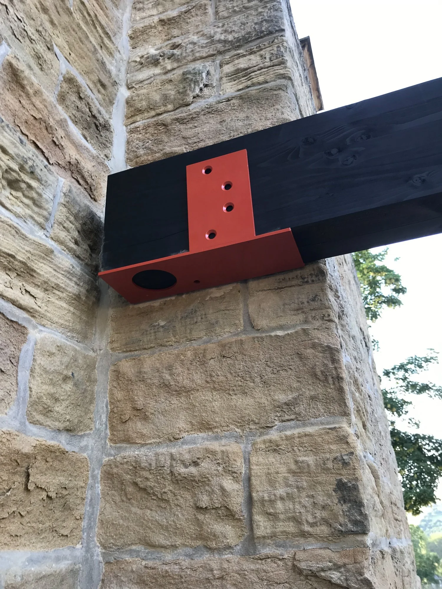 Corten and powder coated steel planters, recycled solid core wood composite decking, Italian porcelain tiles, glue laminated pergola and fencing from FSC timber, British larch bench with cherry dowels, custom made pergola and wall bracket from mild steel - galvanised and powder coated in 1970’s Vauxhall Tasman orange with stainless steel pins