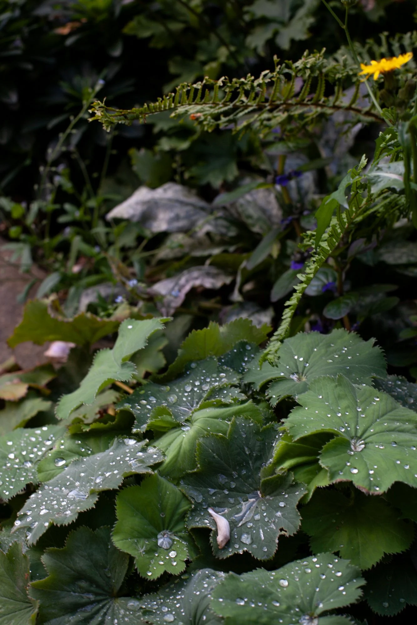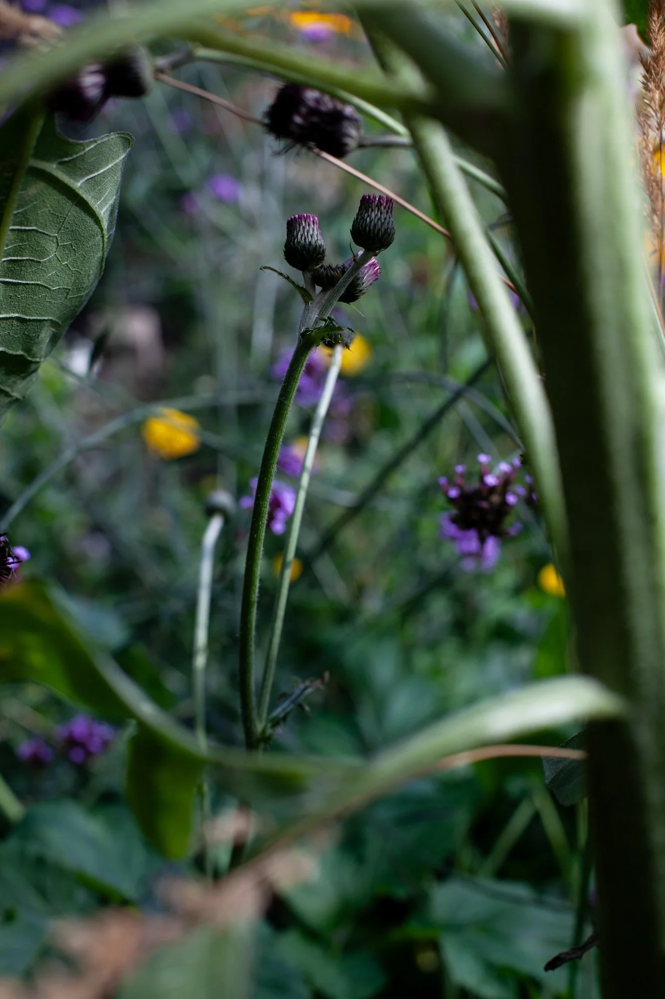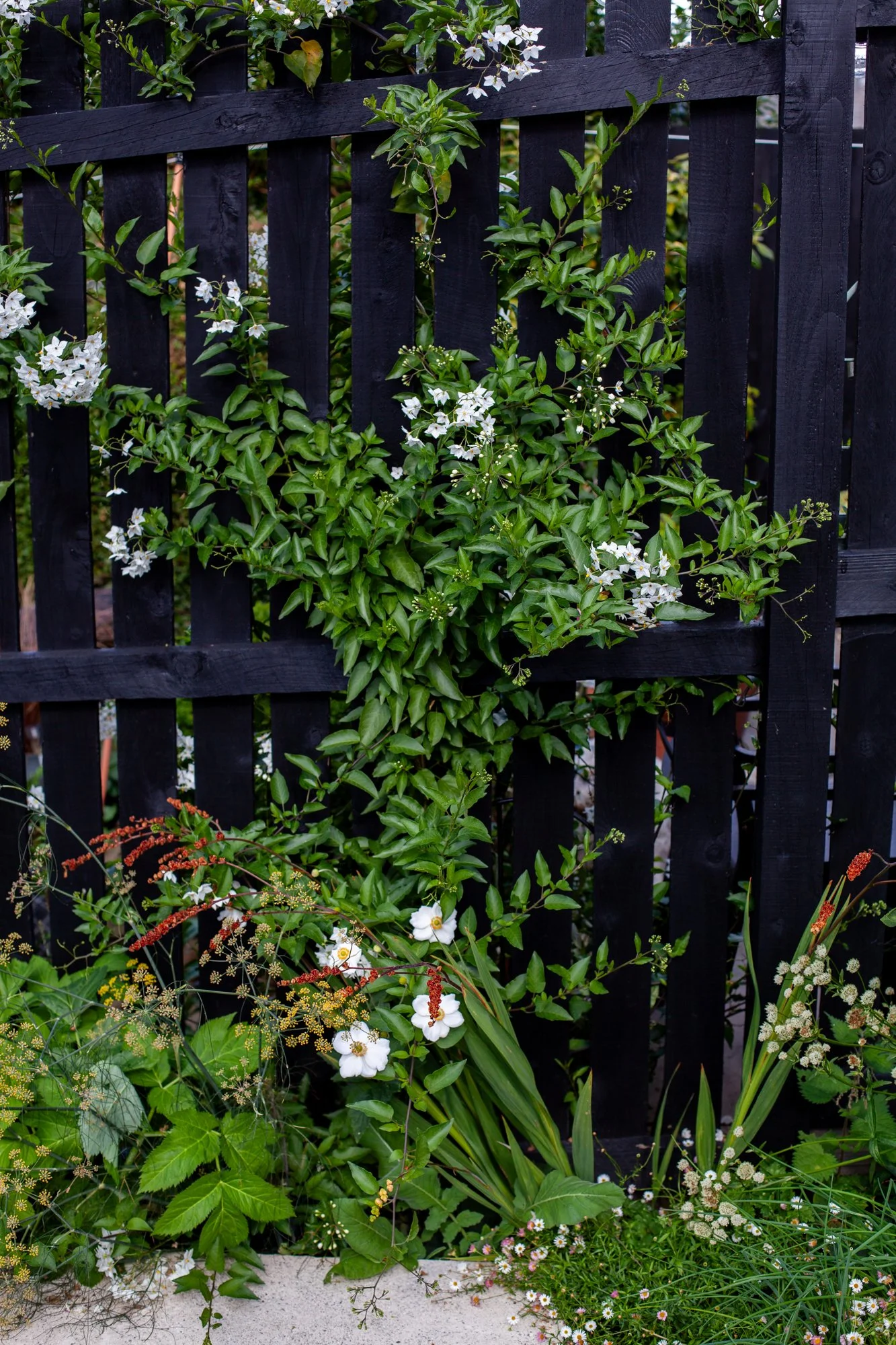 shade tolerant mixture of evergreen planting in deep shade areas with long border of grasses and flowering perennials and edible plants mixed through, large area of grass as play area seeded with a clay shade mix, sarcococca, purple elder and canadian service berry on clay/clinker soil in a north facing aspect