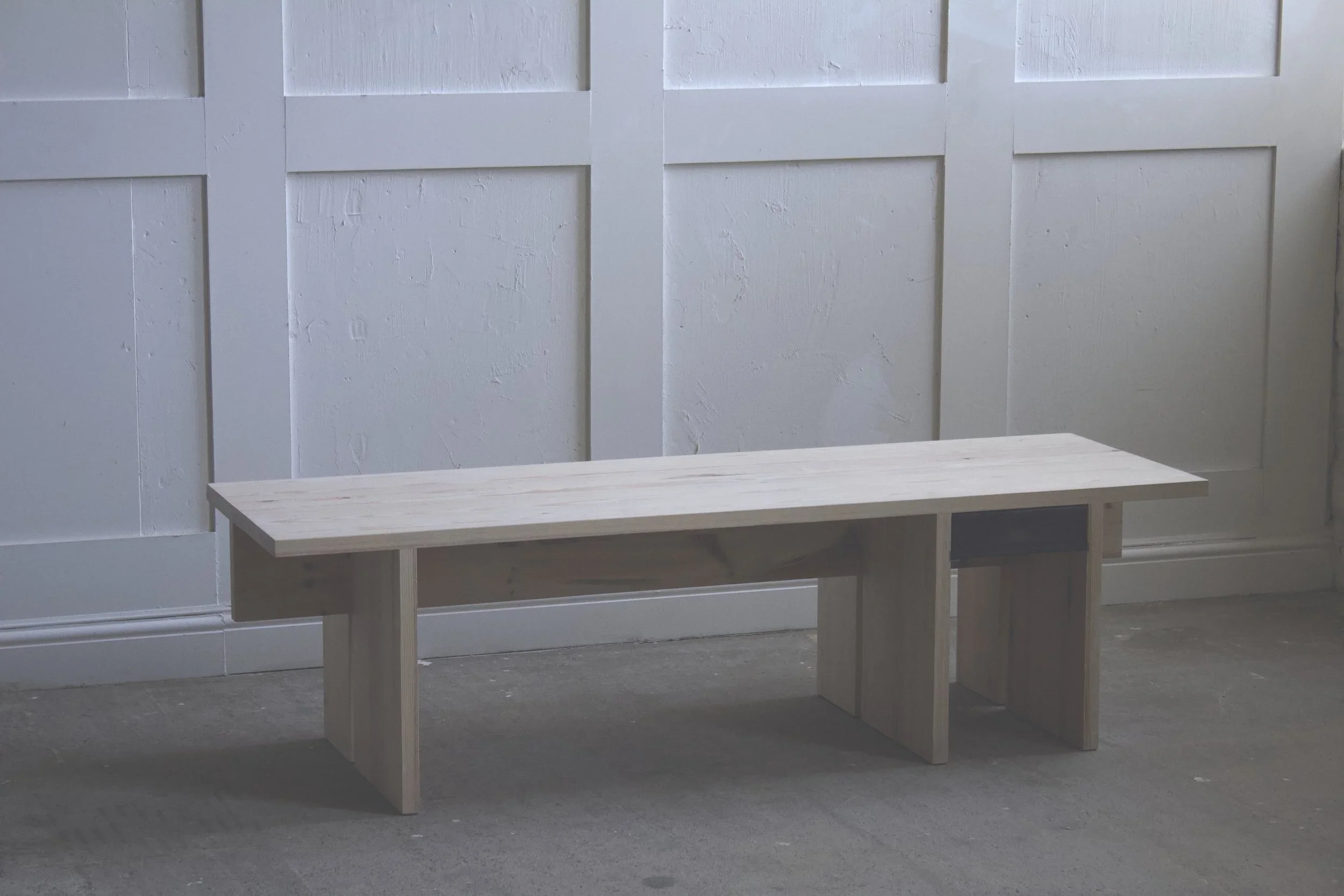 This collection of furniture celebrates the simplicity of common materials. Shaped, finished and combined to create bold captivating pieces full of refined details. Tactile sculptural pieces, elegantly functional and beautifully balanced, they have been designed for a slower, more considered pace of life. The familiar warm tones of pine are tempered with a natural lime waxing and contrasted through the scorching process.