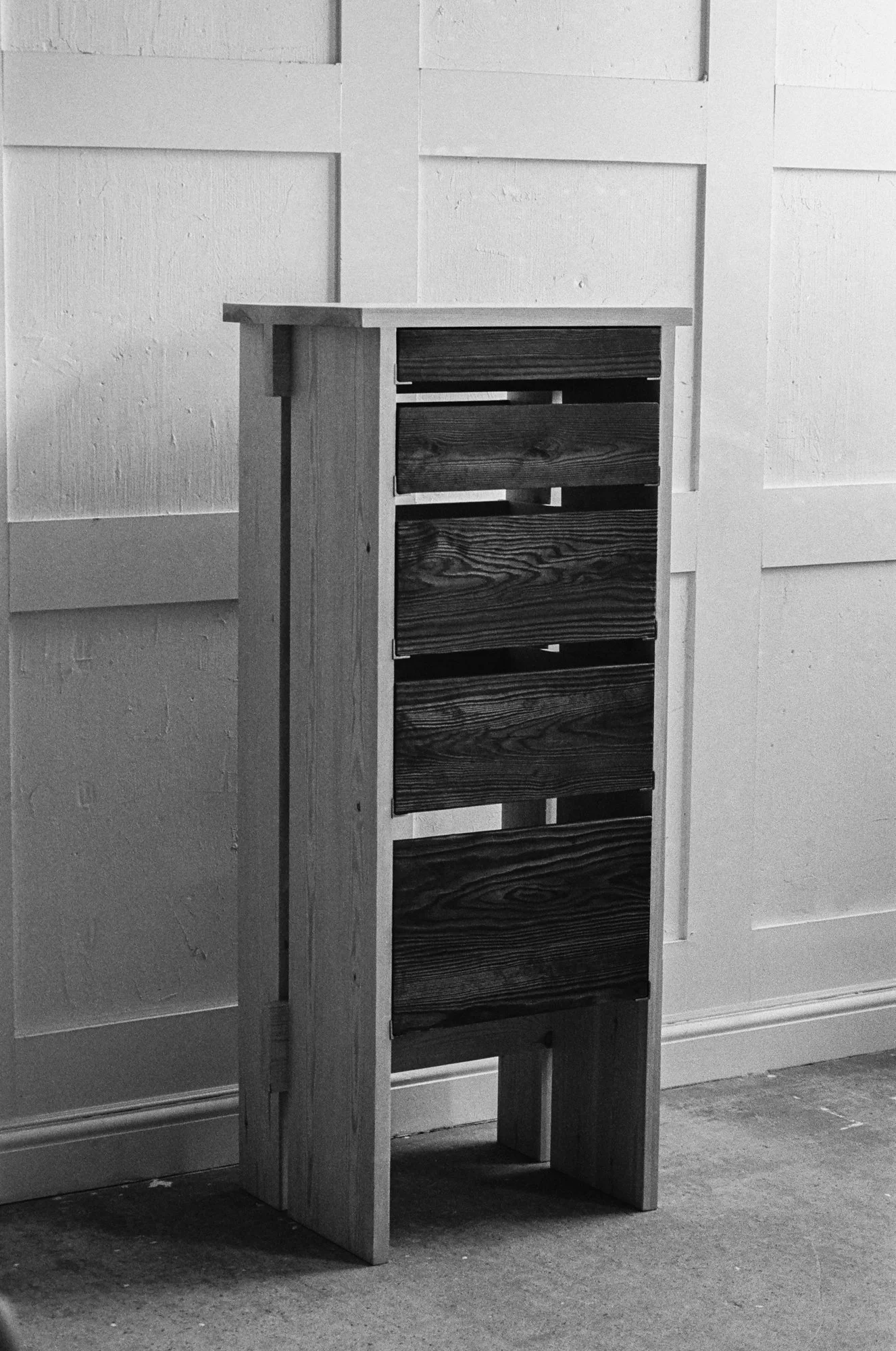 This collection of furniture celebrates the simplicity of common materials. Shaped, finished and combined to create bold captivating pieces full of refined detailing. Tactile and sculptural, elegantly functional and beautifully balanced, they have been designed for a slower, more considered pace of life. The familiar warm tones of pine are tempered with a natural lime waxing and contrasted through the scorching process.
