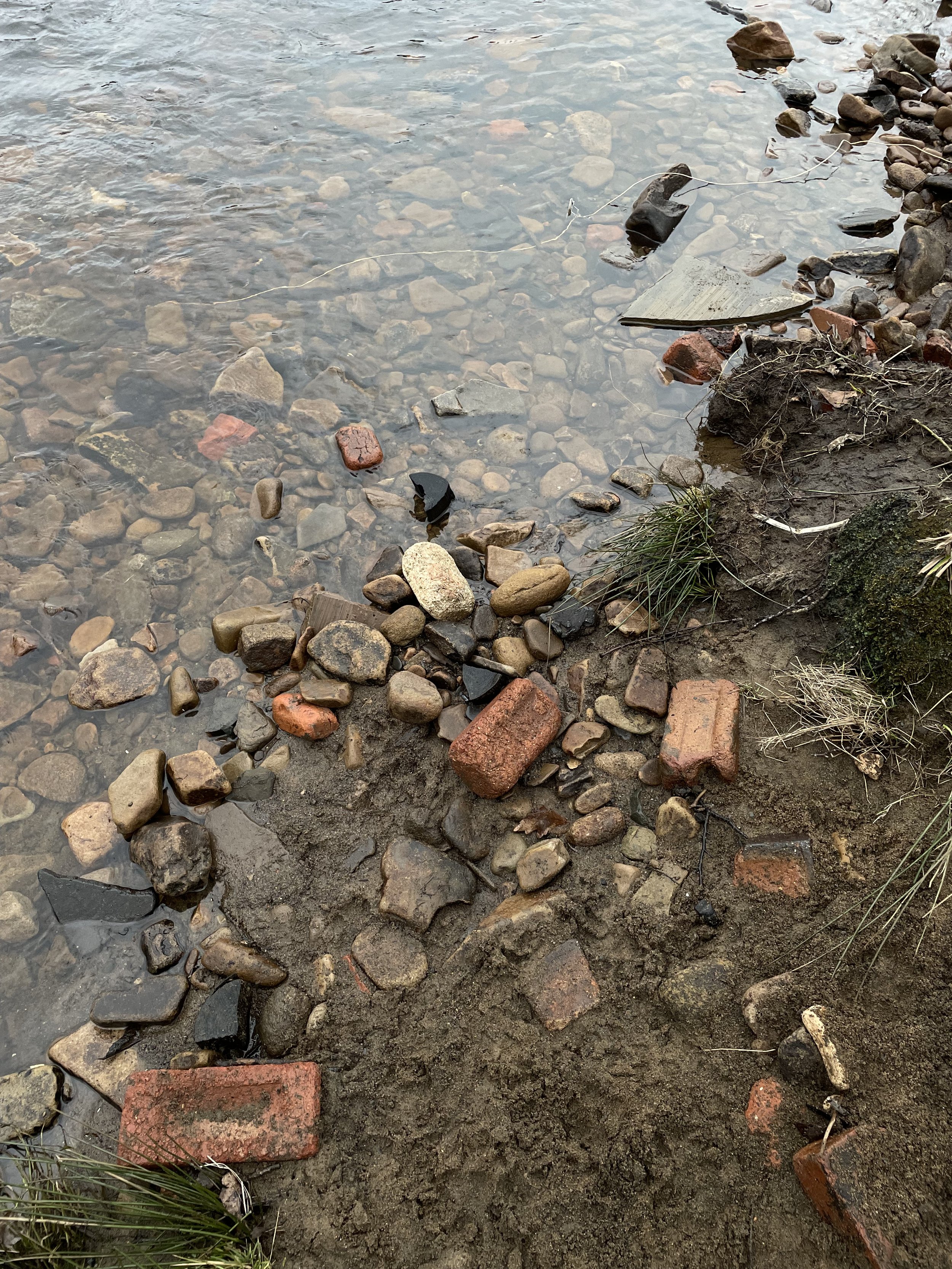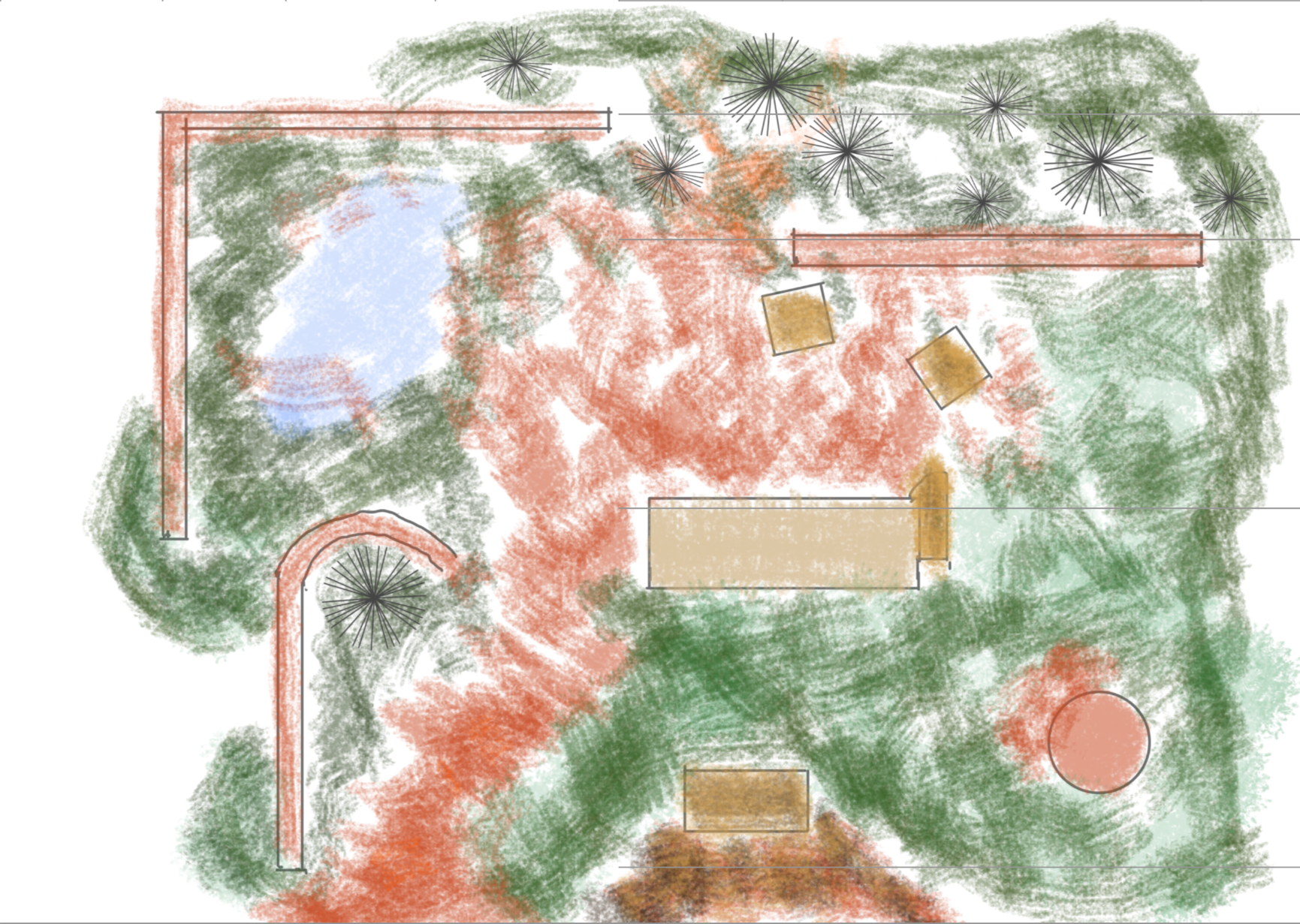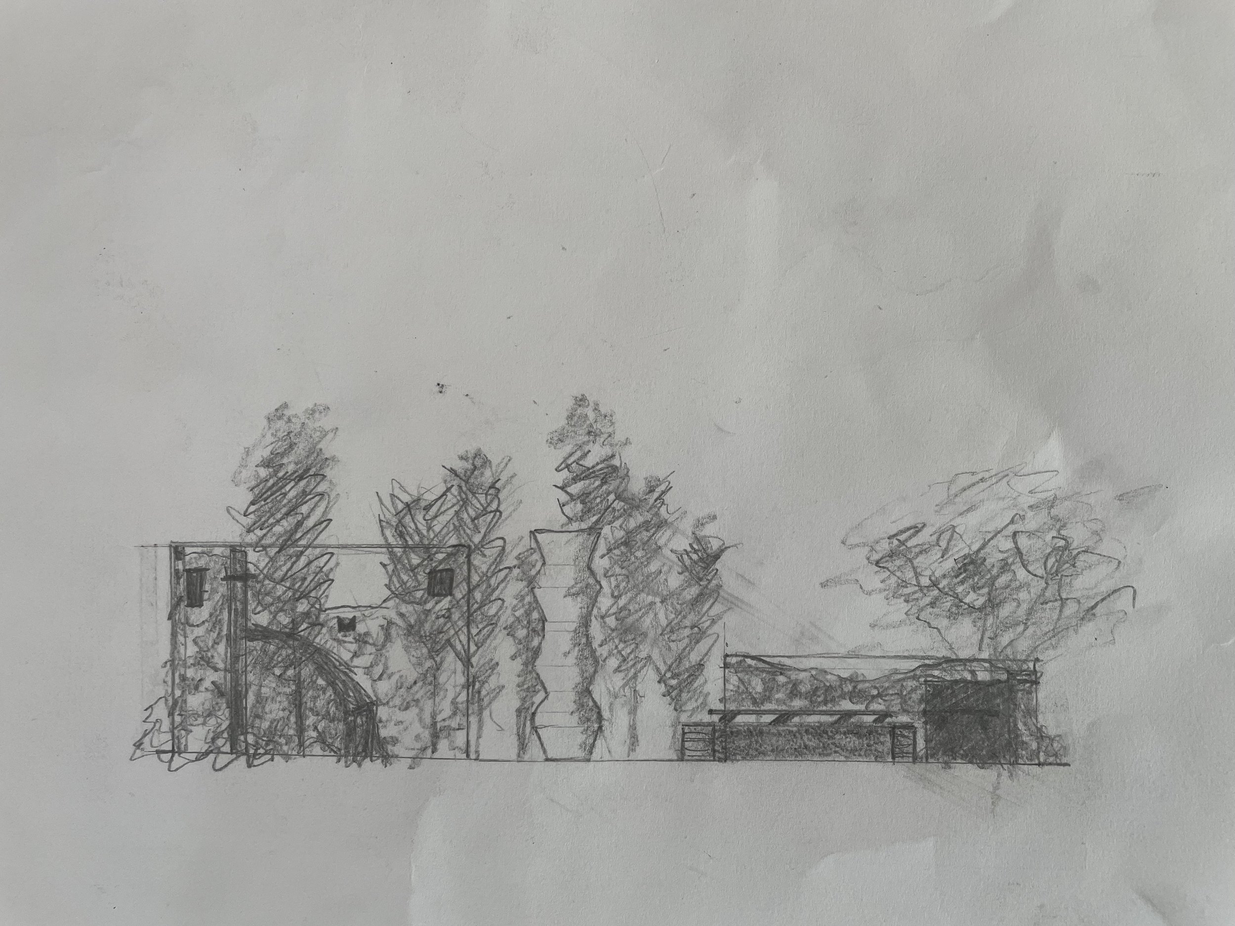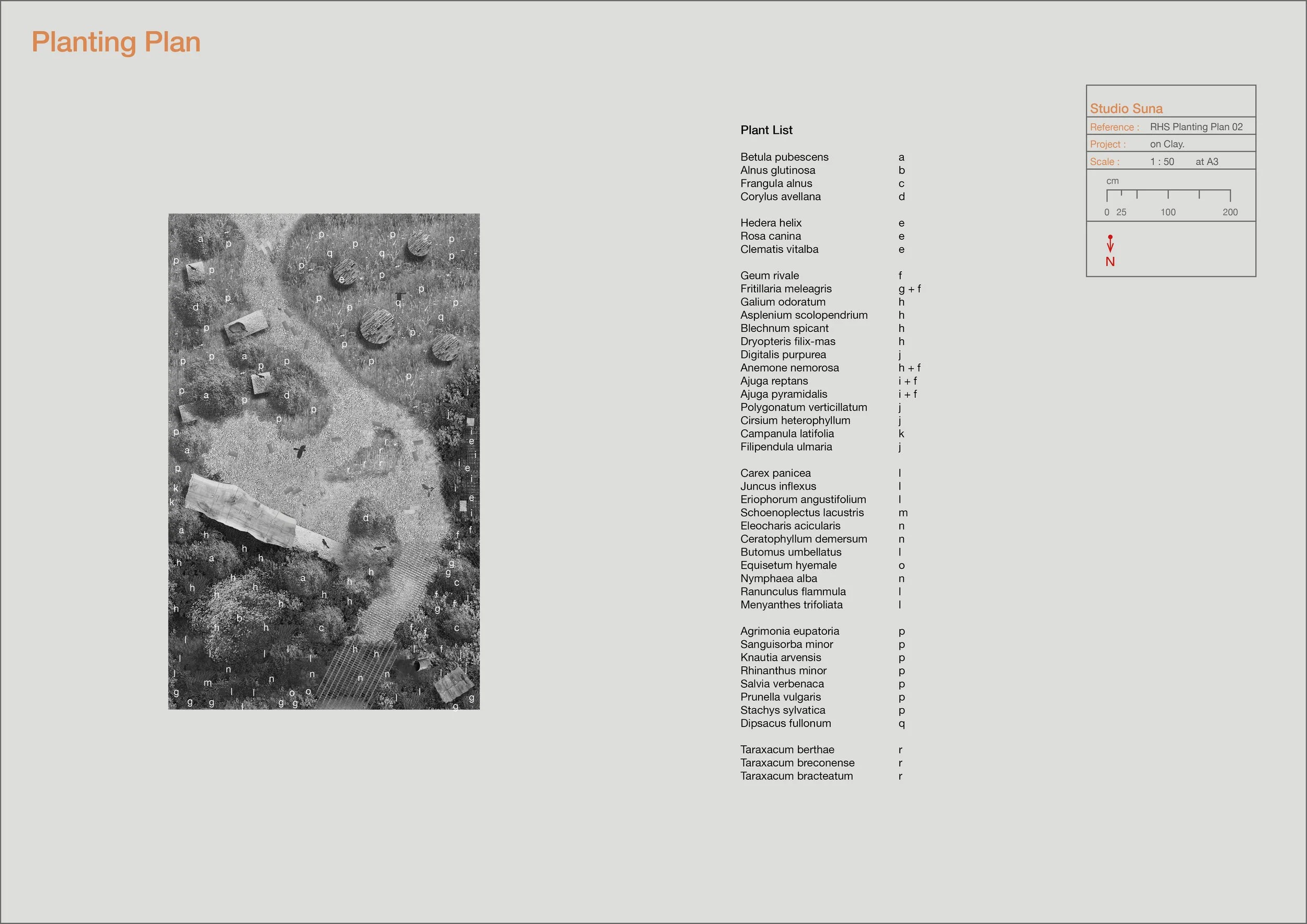 Reorientated design and boundary editions made from common building materials, waste brick and processed wild clay excavated on site during construction activities.