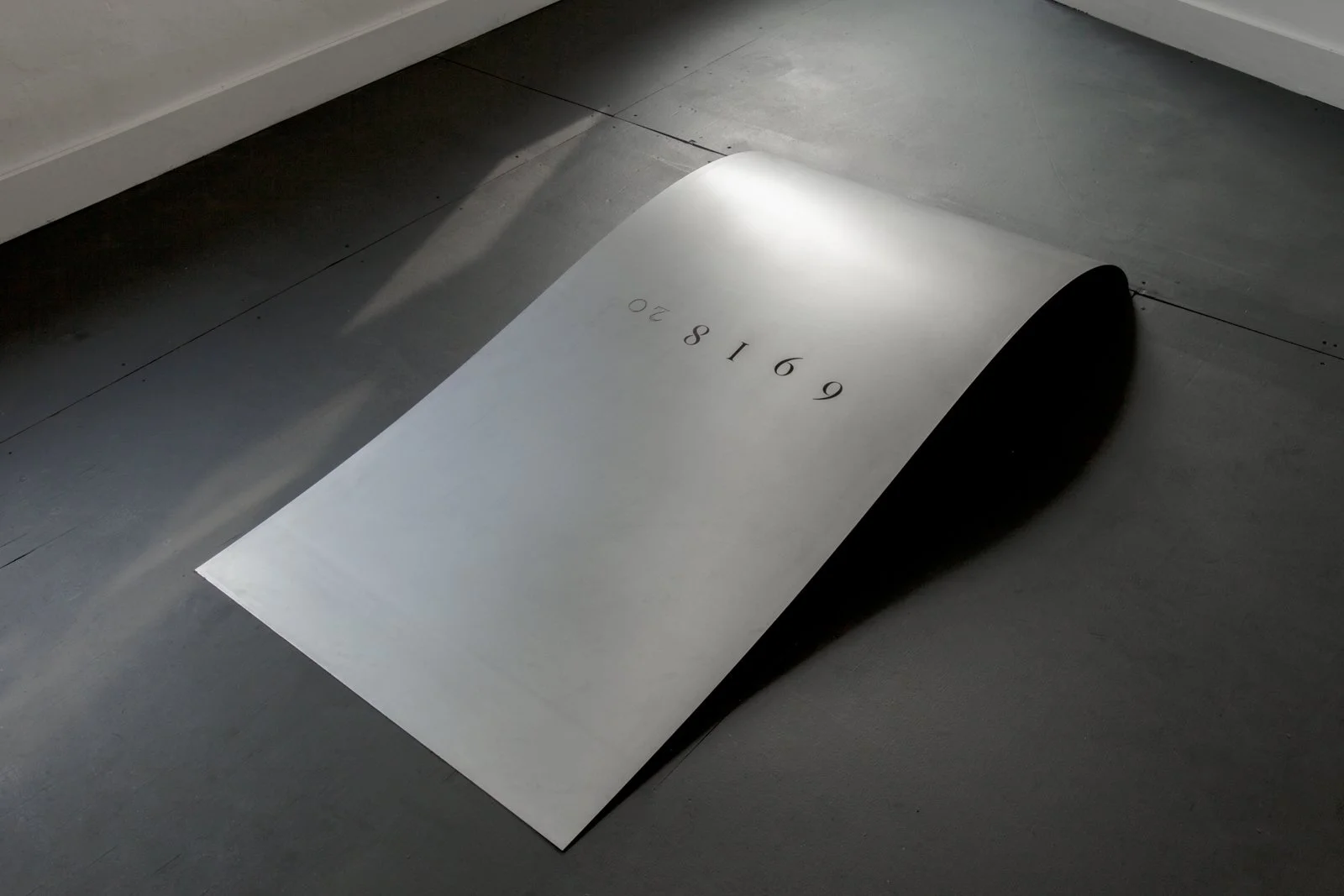 Negative plaster relief, floating 11-gauge steel support, laser cut 14-gauge steel sheet, 1400 x 888 x 170mm